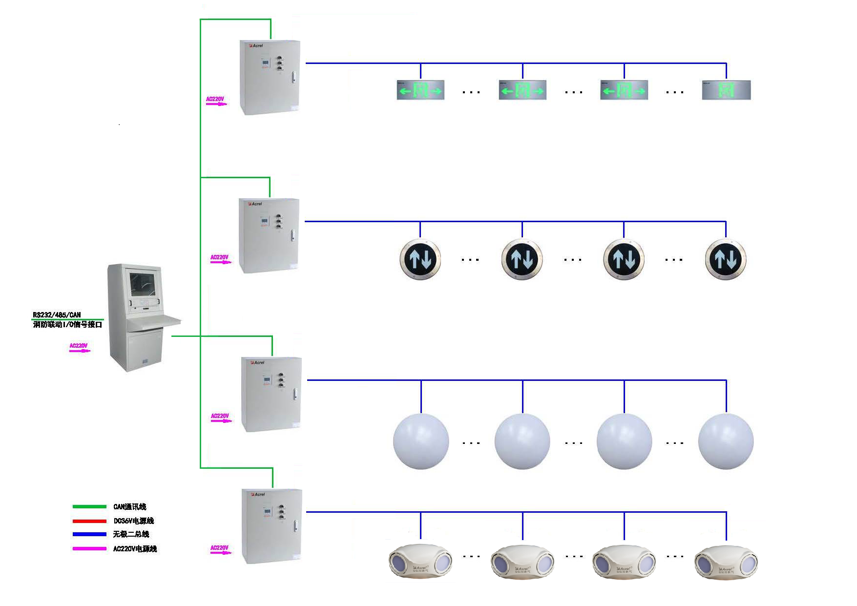 阿克苏数据机房项目的消防应急照明和疏散指示系统是安科瑞研发的集监视、报警、管理于一体的计算机测控系统,该系统可以通过控制器接收火灾报警系统的信号,当火灾发生的时候,消防应急照明和疏散指示系统具有智能动态导光功能,系统根据火灾报警联动信号及灾情现场的具体情况通过计算机选择一条正确逃生路,再通过改变标志灯的箭头方向为逃生人员提供更有效的疏散逃生路。当发生紧急断电或电源供电不足时,应急照明集中电源能够给灯具供电,保证整个系统的正常工作。该系统由控制器、集中电源、消防应急标志灯具和消防应急照明灯具等组成,系统结构合理、功能强大、可靠性高、维护方便。