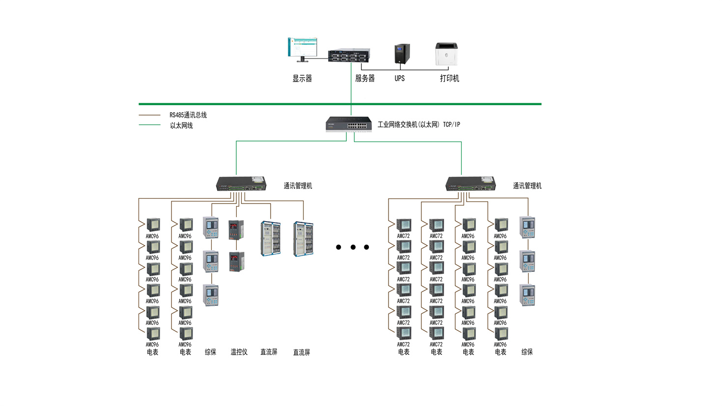 本项目含一个10KV变电所。安科瑞提供的Acrel-2000电力监控系统包括:Acrel-2000软件、5台AM5SE系列微机保护、2台直流屏、2台温控、128只智能电表AMC-72L/96L。