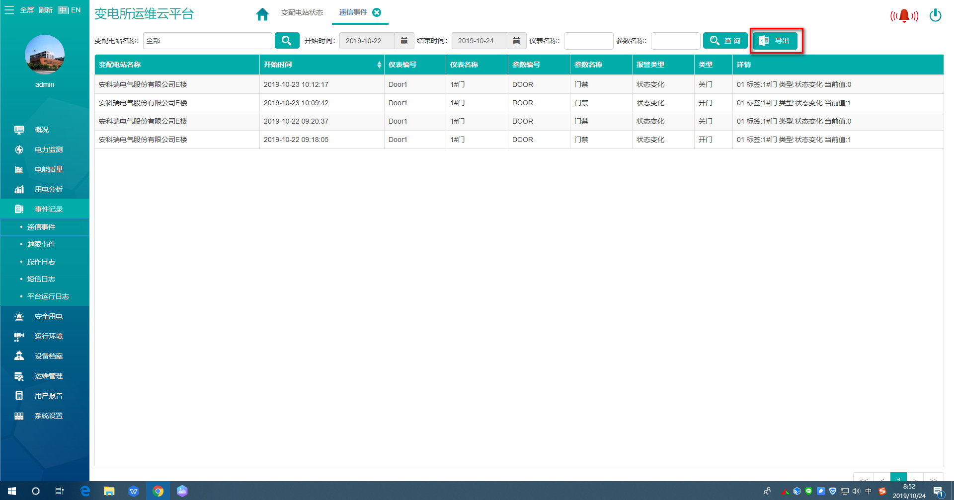 事件记录方便运维人员查看分析设备如断路器合分、门开门关、电流电压越限告警、故障告警、短信志、平台运行日志等记录。
