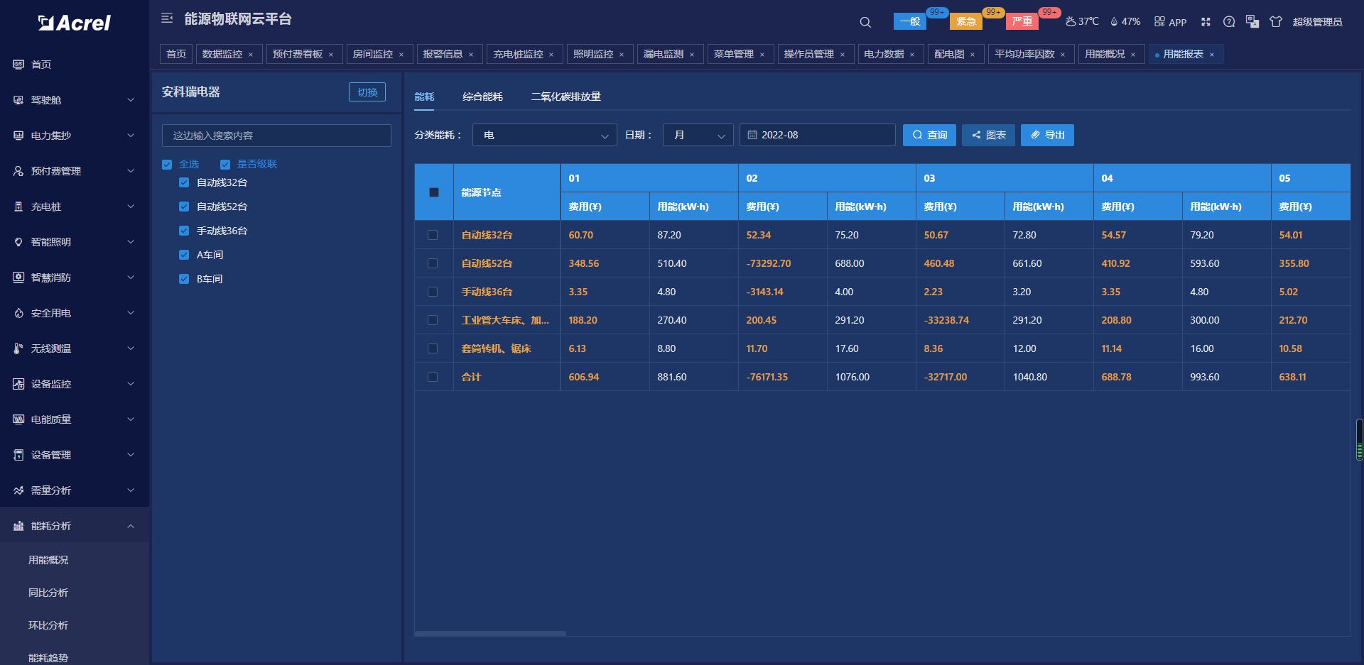 能耗分析模块采用自动化、信息化技术,实现从能源数据采集、过程监控、能源介质消耗分析、能耗管理等全过程的自动化、科学化管理,使能源管理、能源生产以及使用的全过程有机结合起来,运用先进的数据处理与分析技术,进行离线生产分析与管理,实现全厂能源系统的统一调度,优化能源介质平衡、有效利用能源,提高能源质量、降低能源消耗,达到节能降耗和提升整体能源管理水平的目的。