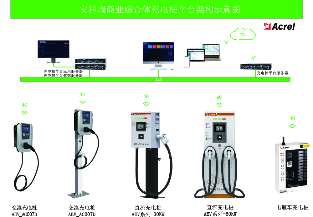 商业中心停车场有电动汽车和电动自行车,均需要提供充电桩。充电桩管理系统通过物联网技术对接入系统的充电桩站点和各个充电桩进行不间断地数据采集和监控,解决物业、用电管理部门的充电桩使用、监控问题。电动自行车充电可采用投币、扫码充电方式,电动汽车支持IC卡和扫码充电方式。远程充电桩系统可实时远程完成启动充电、强制停止、单价设置等控制指令,用户可通过APP、微信、支付宝小程序扫描二维码,进行支付后,系统发起充电请求,控制二维码对应的充电桩完成电动汽车的充电过程。同时对各类故障如充电机过温保护、充电机输入输出过压、欠压、绝缘检测故障等一系列故障进行预警;能够远程控制,提供财务报表和数据分析等功能。