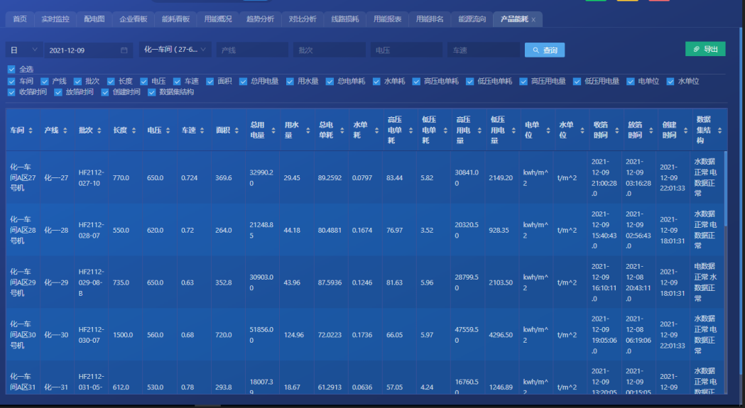 系统根据能源消耗及生产计划安排计算区间产品吨水电耗或万元产值能耗,从而制定能源绩效考核。